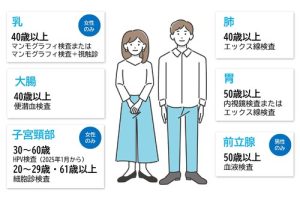 がんは、日本人の最も多い死因であり、生涯のうち2人に1人がかかると言われています。がんの治癒には早期発見・早期治療がなによりも大切ですが、早期のがんの大半は無症状のため、「自分は大丈夫」と思いがちです。「もっと早く検診を受けておけば…」とならないよう、自覚症状のない時にこそ検診を受ける事が大切です。がんは、早期発見・早期治療が重要なキーワードです。