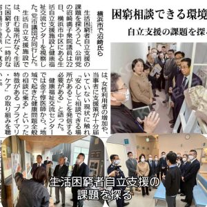 公明党横浜市会議員団は、沼崎満子衆議院議員と共に横浜市寿町にある横浜市生活自立支援施設「はまかぜ」を視察しました。
